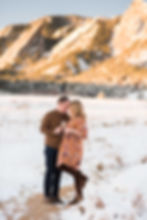 Emily and Matt braved the cold to play in the frozen landscape at Chautauqua Park. There was skipping, snuggling under blankets, and bubbly to warm them. These two had described themselves to me as total goofs who liked street festivals and going to breweries. Their amazing sense of humor really came through as they found out that the age-old secret to staying warm in the snow with bare legs was belly laughs and LOTS of cuddling.